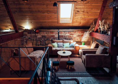 Na první pohled jednoduchá, uvnitř plná možností. Stodola je srdcem všech větších oslav a neformálních setkání. Červené trámy, původní zdivo, otevřený prostor a světlo, které mění atmosféru během dne i noci. Vlastní bar, grily, sociální zázemí a skvělá akustika – to vše vytváří ideální zázemí pro firemní večírky, svatby, rauty i teambuildingy.